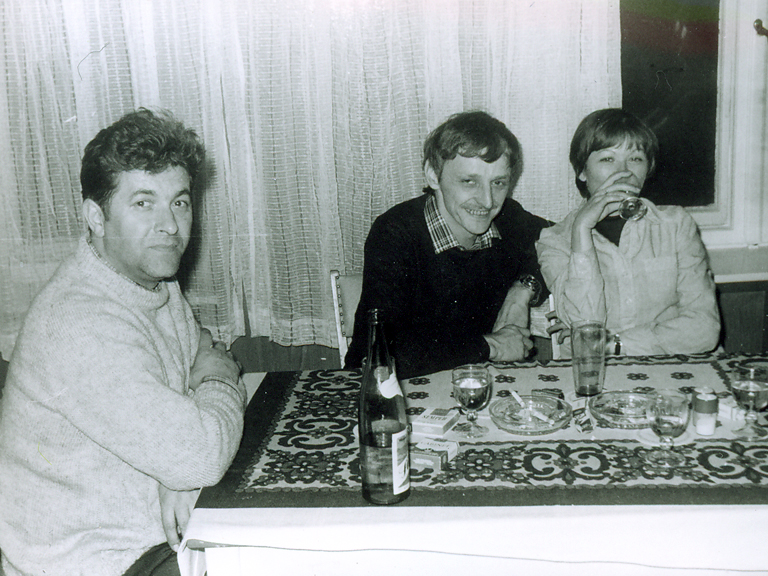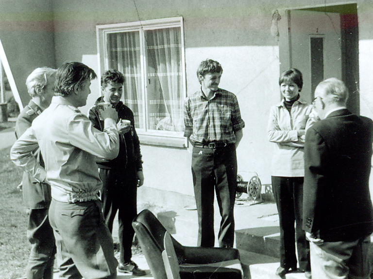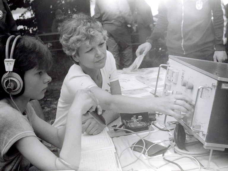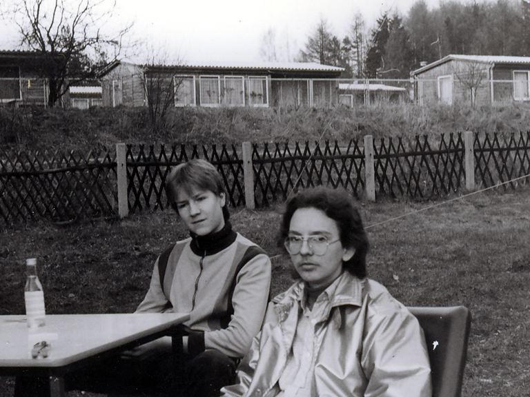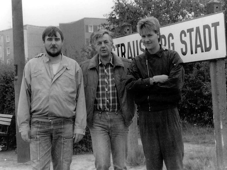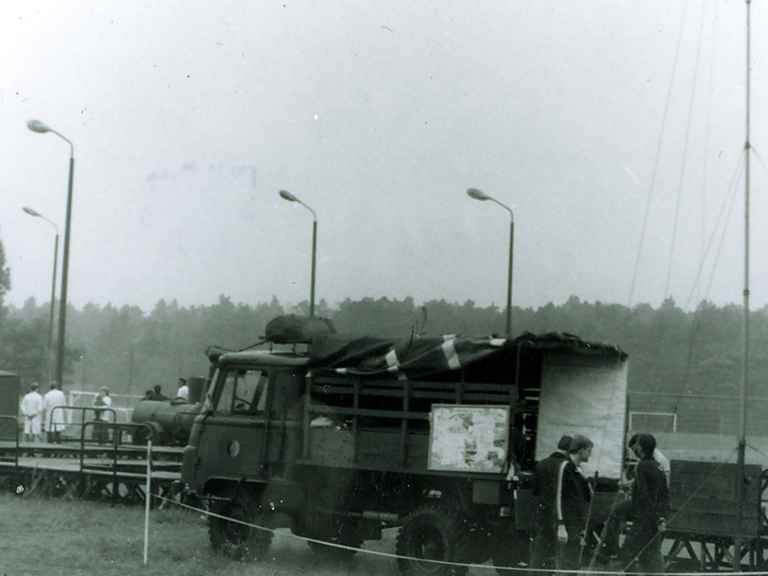Strausberg-Time Egon, Mike and Ron starting to Primorsko at 1987-09-13Visit from I17 in Ron’s Garden 1990Antennas from the club station in Strausberg, LandhausstrasseTina with Manuela at Teltow 215Mike and ManuelaClubevent Ron, Renè, ?, Manuela